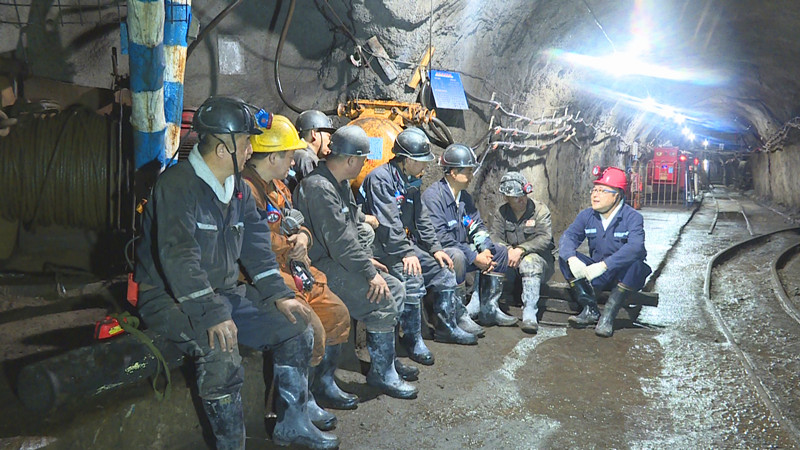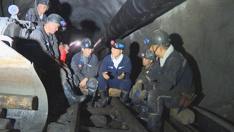 在623队掘进工作面,,,,,,当班职工刚吃完班中餐,,,,,,大家围坐在一起,,,,,,认真聆听宣讲员讲述党史故事。。。。。。。。巷道内,,,,,,除了风机传来微微的轰鸣声,,,,,,只有宣讲员的宣讲声。。。。。。。。